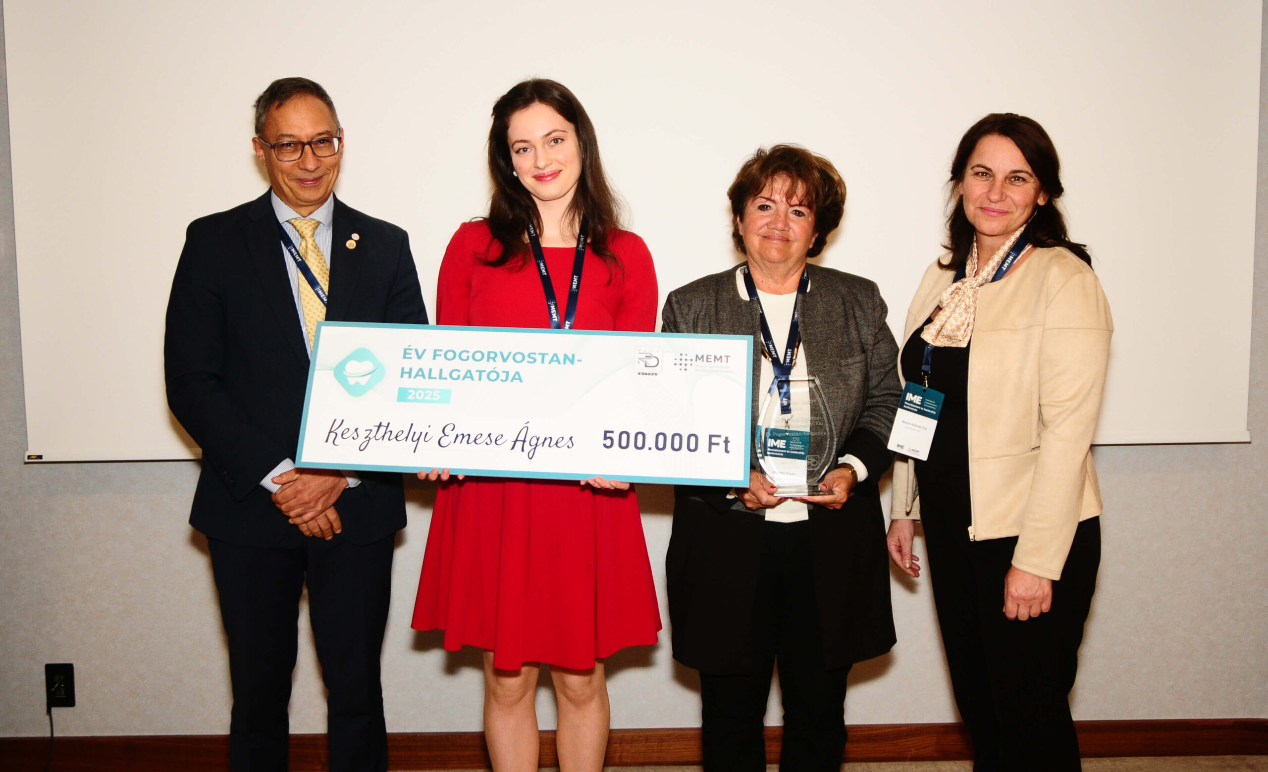 A zsűri értékelése alapján az Év Fogorvostan-hallgatója 2025 díjat Keszthelyi Emese Ágnes nyerte el, aki a Semmelweis Egyetem hallgatója.