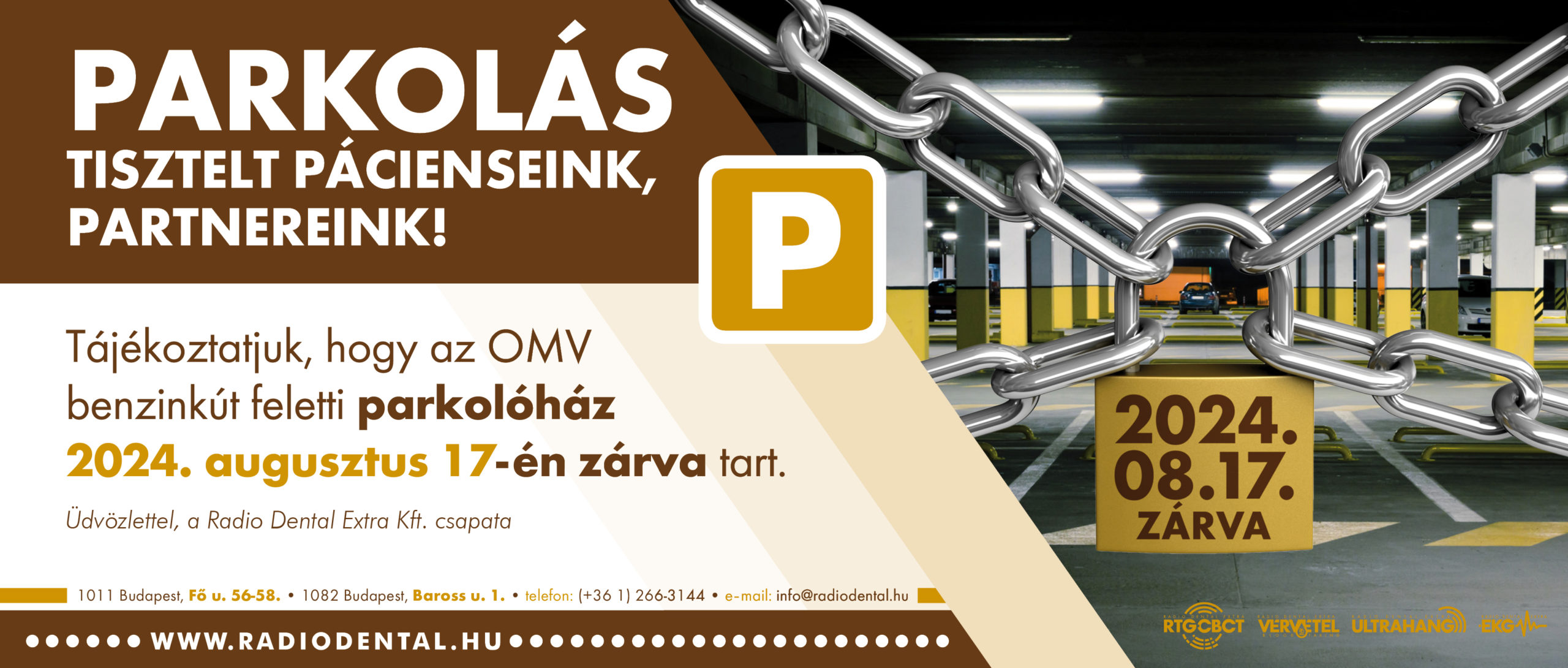 Tájékoztatjuk, hogy a Baross utcai röntgencentrumunkba érkező páciensek számára 2024. augusztus 17-én nem tudunk díjmentes parkolást biztosítani, mert a parkolóház aznap zárva van.