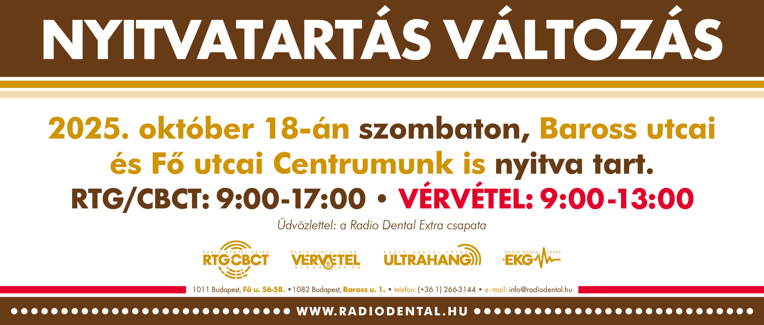 Értesítjük Önöket, hogy 2024. október 18-án Baross utcai és Fő utcai Centrumunk is nyitva tart.